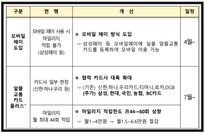 또한 7월부터는 월 마일리지 적립한도를 60회로 상향되어 마일리지 적립도 늘어날 예정입니다. 그리고 7월부터 기존 6개 카드사에서 총 11개 카드사까지 알뜰교통카드를 이용가능하다고 하니, 여러 카드사를 비교해 보고 혜택이 좀 더 좋은 카드사를 선택할 수 있는 폭이 넓어져 소비자들에겐 이득이 될 듯 합니다.