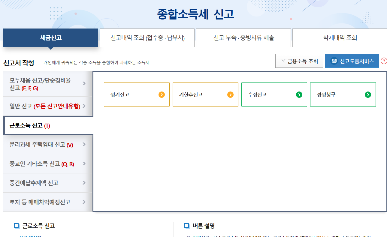 2) 왼쪽 메뉴중 근로소득 신고 - 경정청구로 들어갑니다.
